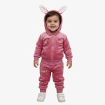 Pink Bunny Ear Hooded Kids Velvet Tracksuit Set
