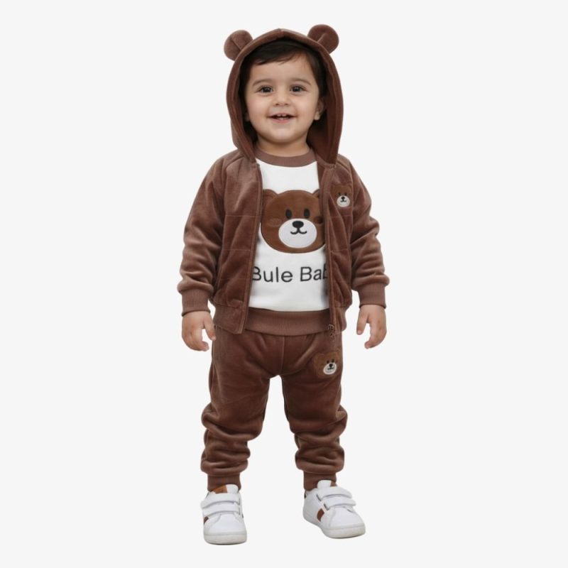 Brown Teddy Bear Velvet Kids Winter Tracksuit Set