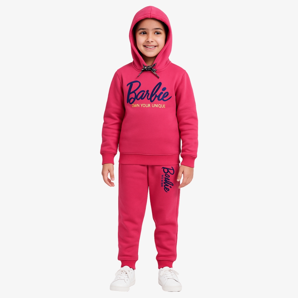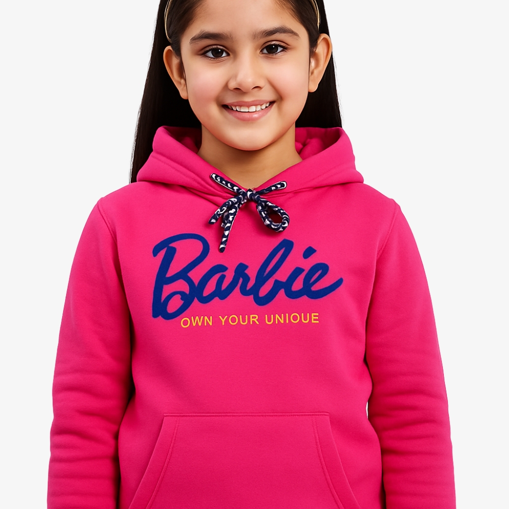 Girls’ Barbie Hot Pink Hoodie & Jogger Set – “Own Your Unique” Loungewear Outfit