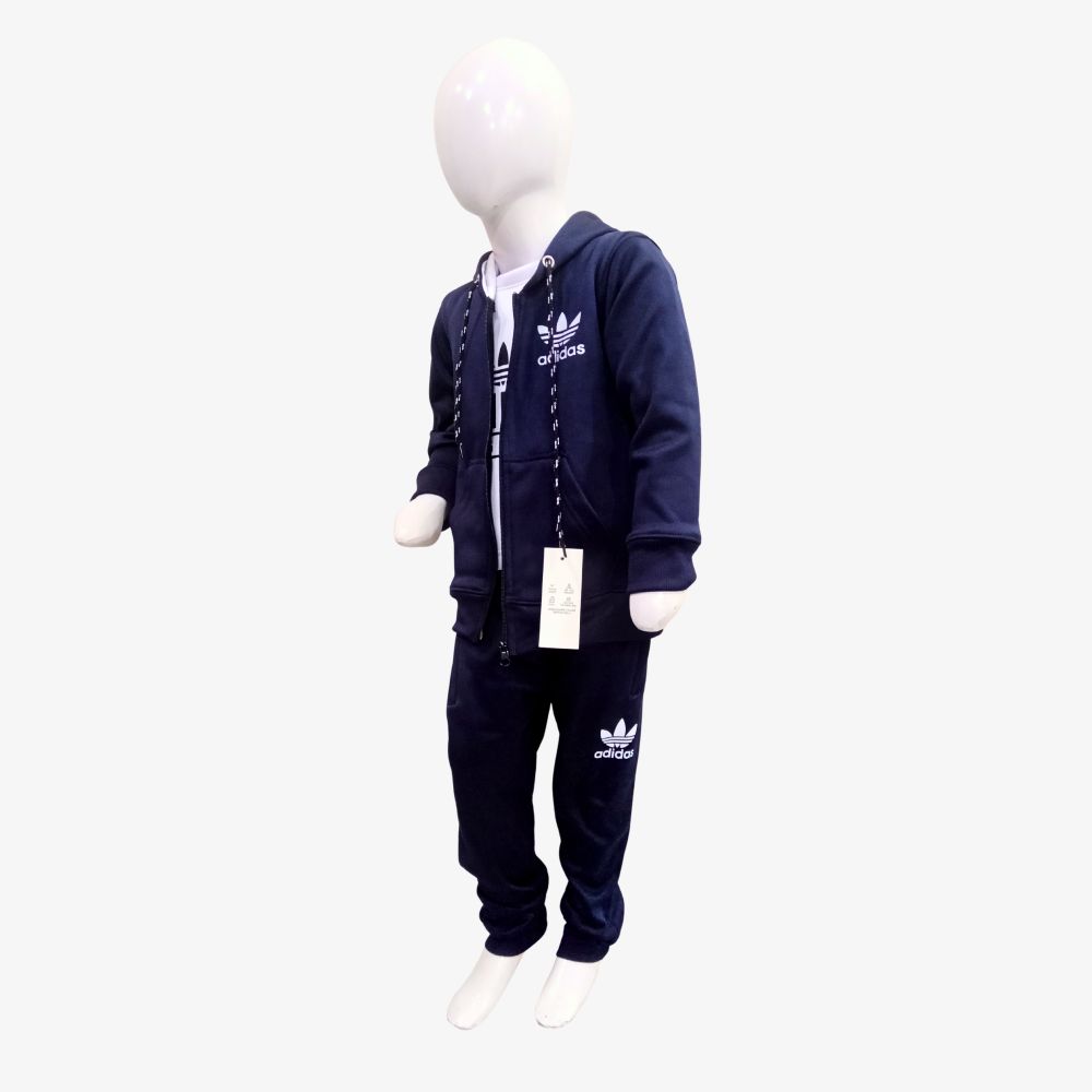 This stylish navy blue kids tracksuit set includes a comfortable zip-up hoodie, matching jogger pants, and an inner t-shirt for a complete sporty look. Made from soft, breathable fabric, it’s perfect for school, outdoor play, and everyday wear. Durable, comfy, and easy to wash — ideal for active children.